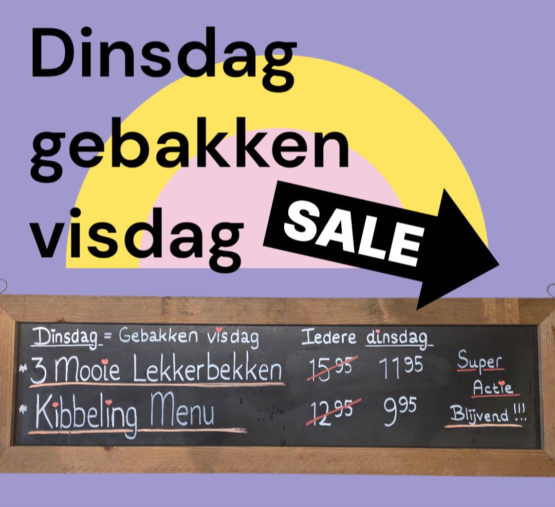 Krokante Kibbeling met verse frietjes, huisgemaakte Ravigottesaus en Udense rauwkost!