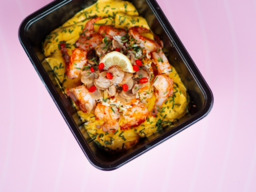 Reuze-Gamba's in knoflookolie (250gr) + GRATIS spaghetti aglio e olio